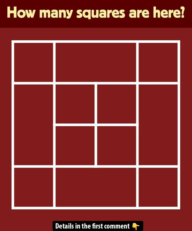 Take a look at the grid above and ask yourself: “How many squares are here?” At first glance, it seems like a straightforward 4×4 pattern—but clever off-center lines hide several more. Challenge your eyes and try to count every single square before reading on!